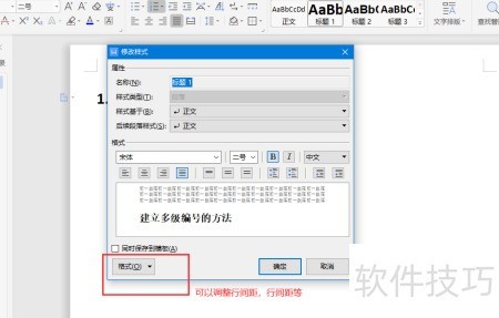 4、 若格式不符需求,可右键点击标题类型,调出样式修改对话框进行调整。