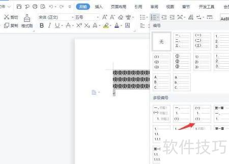 3、 点击多级编号中的任一选项