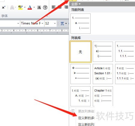 18、 当新增标题导致编号错乱时,只需将鼠标定位到已设置好的标题文字处,点击定义新的多级列表选项,即可重新进入原有的多级列表配置界面,延续之前的层级结构,为新标题正确设置编号,确保整体编号顺序连贯一致。