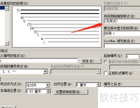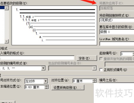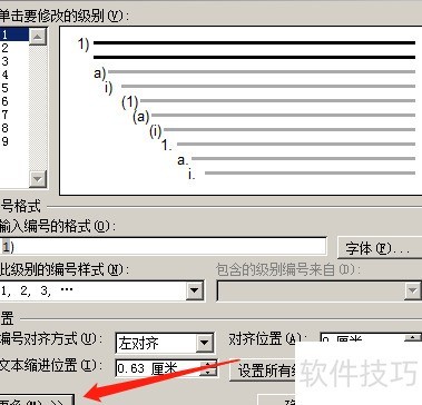 7、 在多级编号对话框中点击更多,可进入设置多级编号与标题关联的界面。