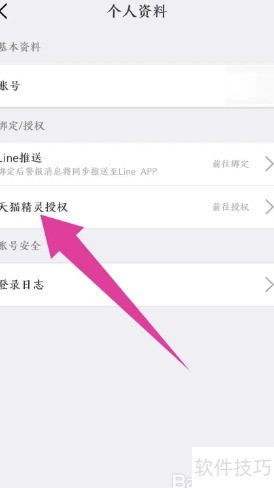 2、 进入个人资料页面后,选择底部的天猫精灵授权功能。