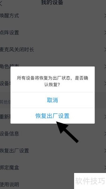5、 系统将弹出提示窗口,确认后选择恢复出厂设置即可完成操作。
