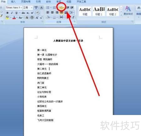 9、 重新全选内容,点击菜单栏段落中的多级列表按钮即可。