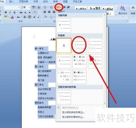 10、 在全部对话框的列表库中选择合适的列表类型,如第二个选项并点击,操作完成后效果所示。