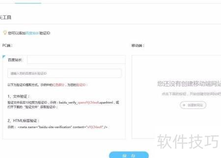 2、 输入从百度站长平台获取的验证ID,操作所示。