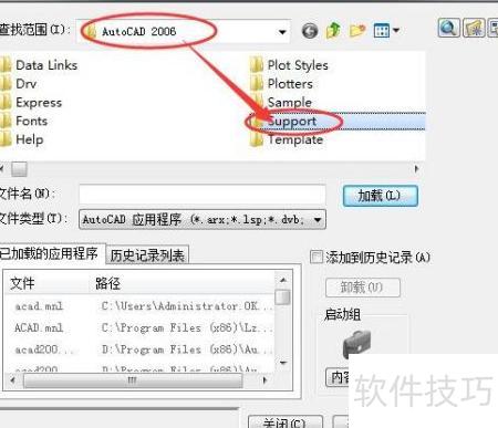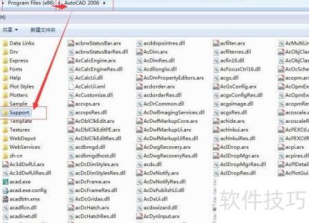 3、 将Ay工具的全部文件复制至cad2006的support目录中即可完成操作。