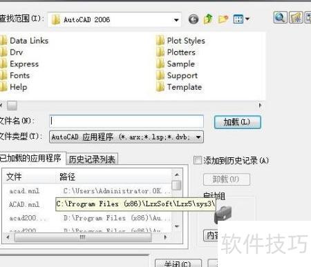 4、 启动CAD 2007,进入工具菜单,选择加载应用程序,导入Ay工具。