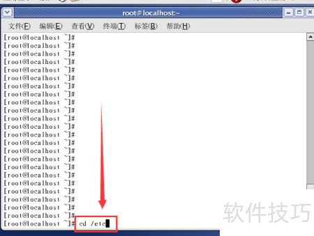 4、 输入 cd /etc 并按回车,即可进入 etc 文件夹。其中 cd 表示切换目录,cd /etc 即将当前工作目录更改为 etc 目录。