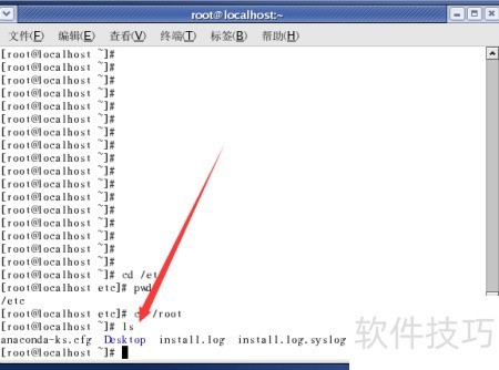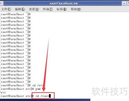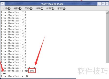 5、 回车后输入pwd命令,可查看当前路径是否为/etc,确认位置。