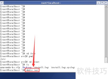8、 使用mkdir命令创建名为tec的目录,mkdir即表示建立新目录。