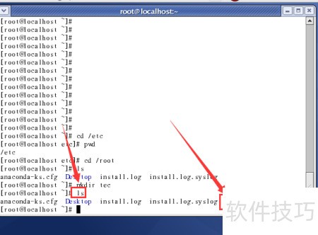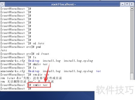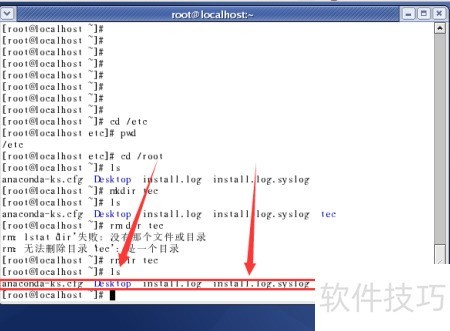 11、 输入ls查看是否已删除tec目录,所示tec已消失。以上几个命令就介绍完了,是不是很简单?