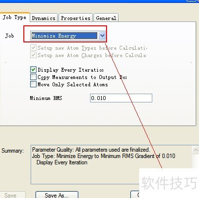 4、 从Job下拉菜单选择Minimize Energy,点击Run开始计算。