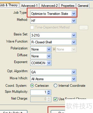 10、 在Job下拉菜单中选择Optimize to Translation State,然后点击Run开始计算。该过程耗时较长,需耐心等待,请提前做好准备。