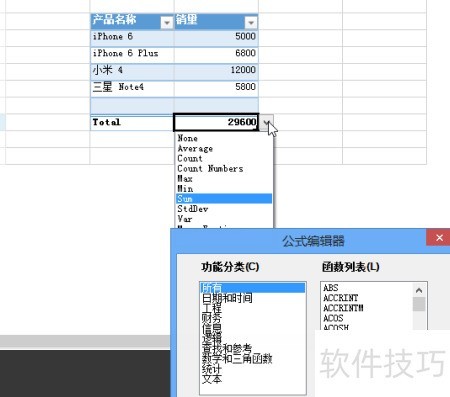 12、 可为表格添加公式,合计行设有下拉菜单,方便选择所需计算方式。