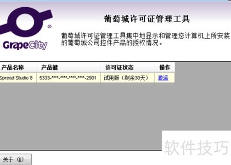 3、 打开许可证管理工具,定位到Spread项目,点击图示的激活按钮即可完成操作。