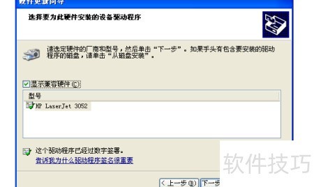 3、 在成像设备中选择HP LaserJet 3052型号进行配置。