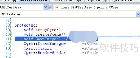 4、 在MFCTestView.h文件中增加函数声明:void SaveImage();,以完成新功能的接口定义。