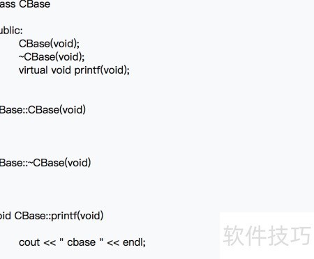 1、 先创建一个基类CBase,再定义一个带有virtual关键字的虚函数printf。