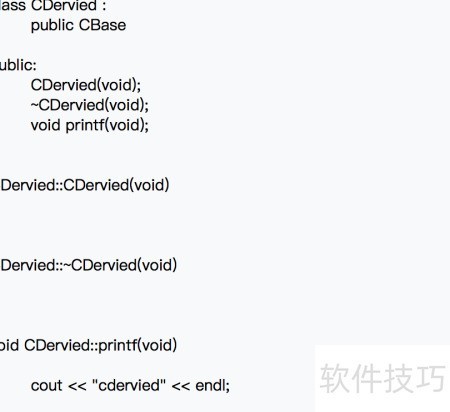 2、 创建CDervied子类继承CBase,并重写printf函数以实现特定功能。