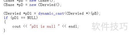 4、 运行调试显示,动态转换后指针为空,表明基类指针无法成功转为子类指针。