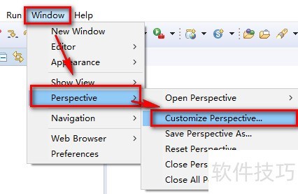 2、 点击菜单栏的窗口,选择透视图,然后进入自定义透视图进行设置。
