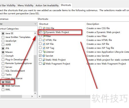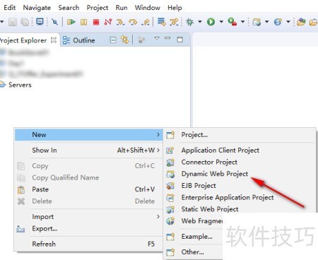 5、 新建项目时,new菜单中已包含Dynamic Web Project选项。