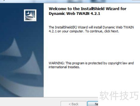1、 双击运行Uniora Web TWAIN 4.2.1.exe安装文件,启动程序并进入安装向导界面。