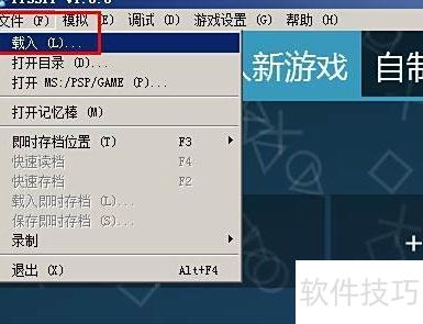 4、 启动PPSSPP的64位Windows版,进入文件菜单选择载入,随后打开此前下载的PSP游戏文件即可开始运行。