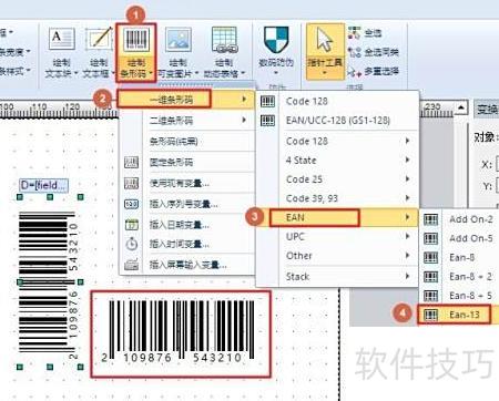 3、 运用文字、条码和图片等工具设计出完整的标签模板。