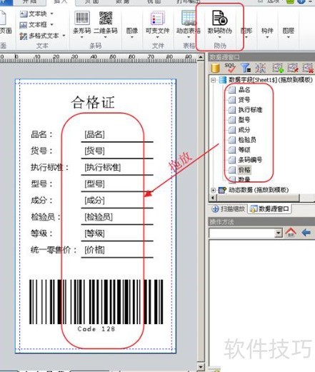 4、 拖拽生成可变数据,自动完成动态内容填充。