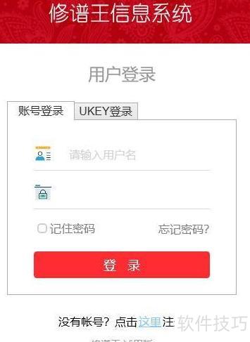 4、 输入修谱王软件账号登录,无账号者请在下方注册,操作所示。