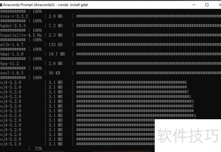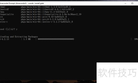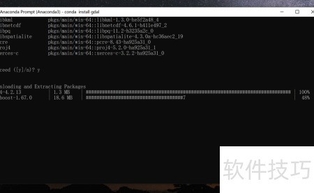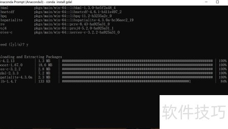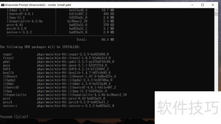 2、 执行第一行命令conda install gdal后,将出现如下所示的安装结果。