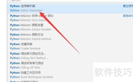 10、 按下Ctrl+Shift+P打开命令面板,输入Python后选择相应的解析器。