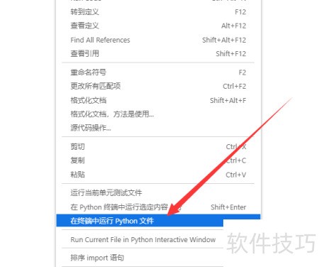 13、 右键点击Python文件空白区域,选择在终端中运行该文件。