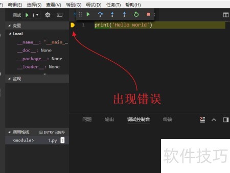 6、 首次在VS Code中运行Python程序时,可能出现调用堆栈:因Entry已暂停的错误提示。