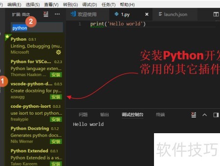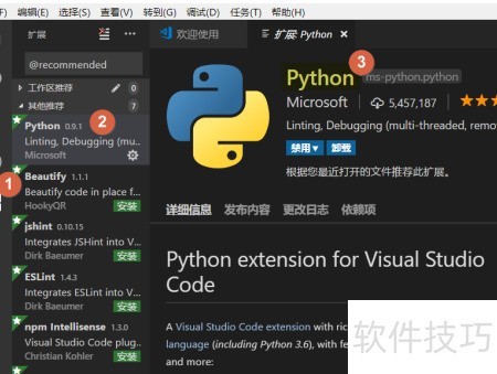 13、 在商店中搜索python,即可找到VS Code开发Python时常用的各种插件,方便扩展功能。
