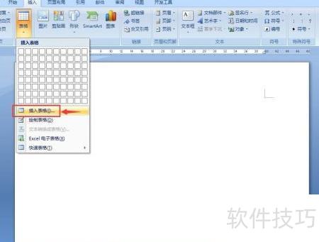 4、 点击下拉菜单,选择插入表格选项。