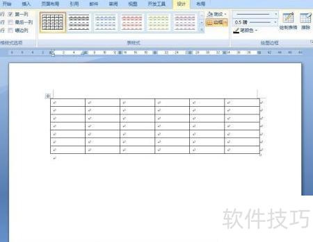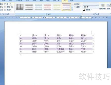8、 在设计菜单里选择一个表格样式。