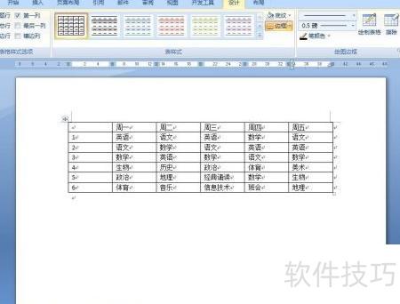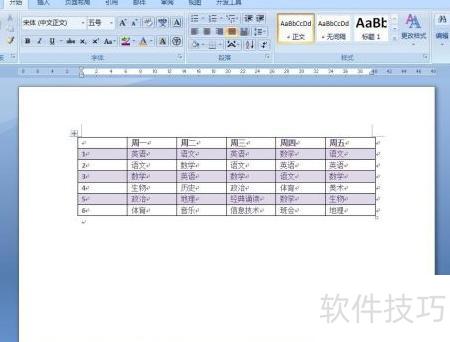 10、 通过此方法,成功在Word中制作出课表。