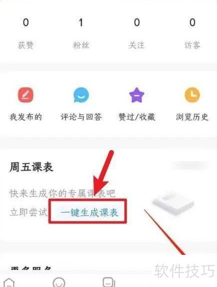 2、 进入应用后,前往个人页面,点击顶部的一键生成课表按钮,即可快速生成专属课程表。