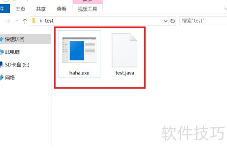1、 在文件夹内放入一个exe程序和一个名为test的Java源文件。