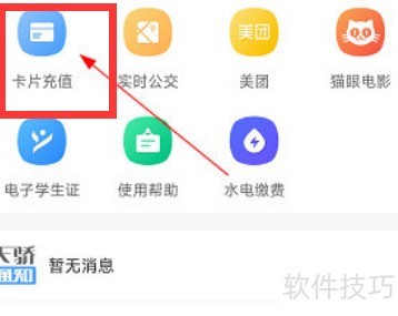 1、 打开天骄通APP,首页点击卡片充值即可。