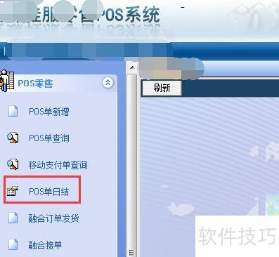 1、 进入店铺系统,选择POS零售菜单中的单日结功能。