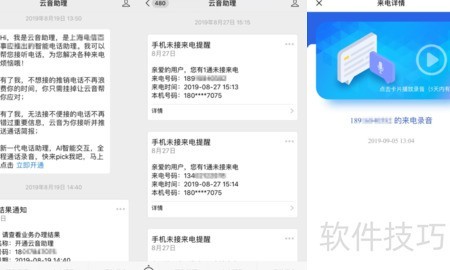 4、 当接到陌生来电,若关机、未接或挂断,系统将启动云音助理AI智能应答,通话记录随后推送至云音助理公众号。