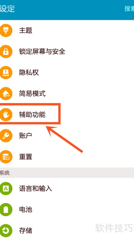 2、 根据图示,进入设置界面后,点击辅助功能选项即可。