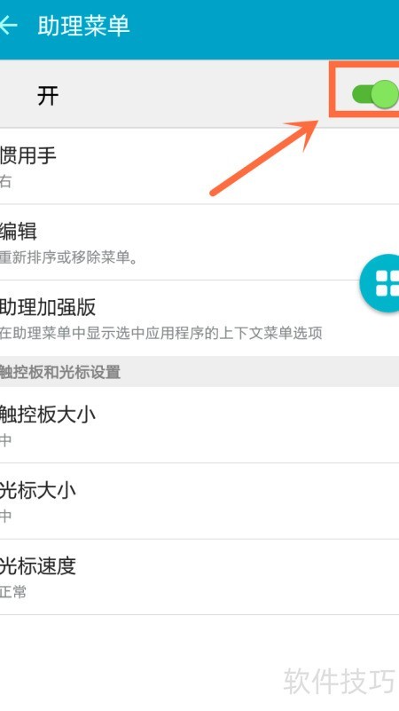 5、 进入辅助功能后,点击右上角开关按钮即可开启。