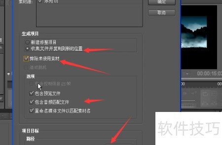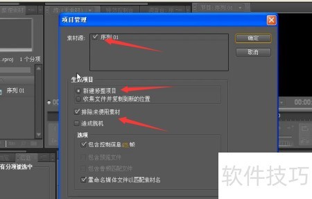 3、 在生成项目中选择新建修正项目并排除未用素材,所示操作即可。项目仅为架构,不含实际文件,因此无法移动办公。