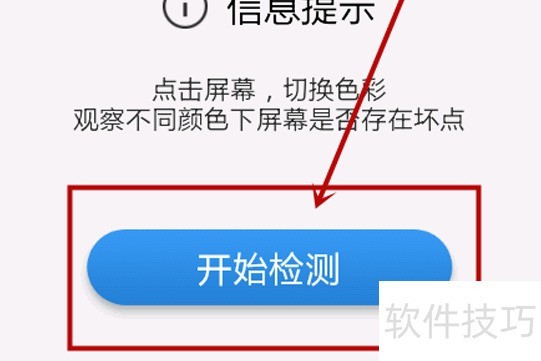 8、 开始检测后屏幕变蓝,点击屏幕即可继续操作。