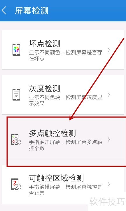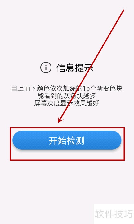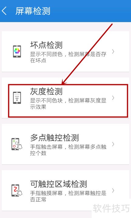 1、 进入手机屏幕检测,选择灰度模式点击测试