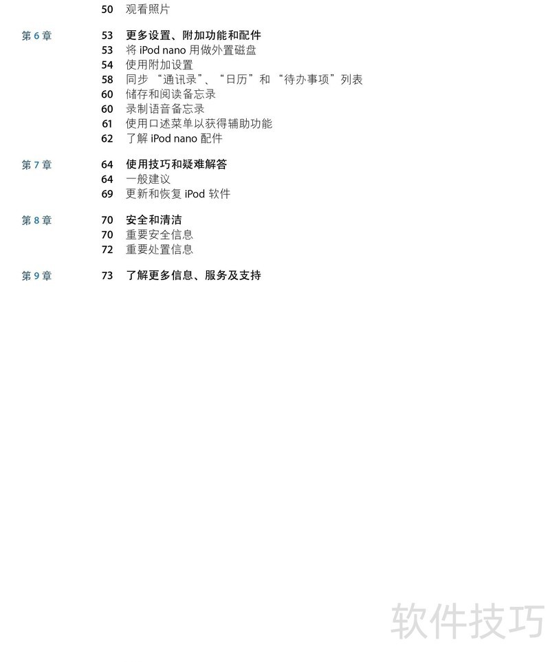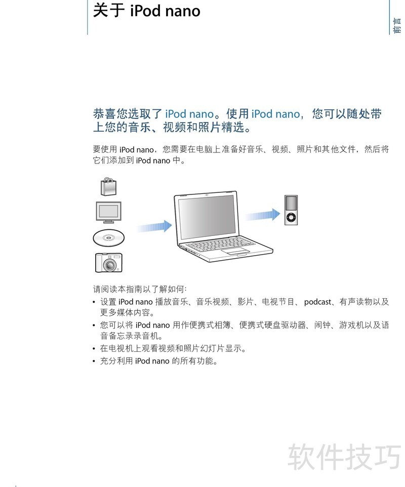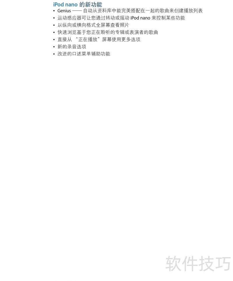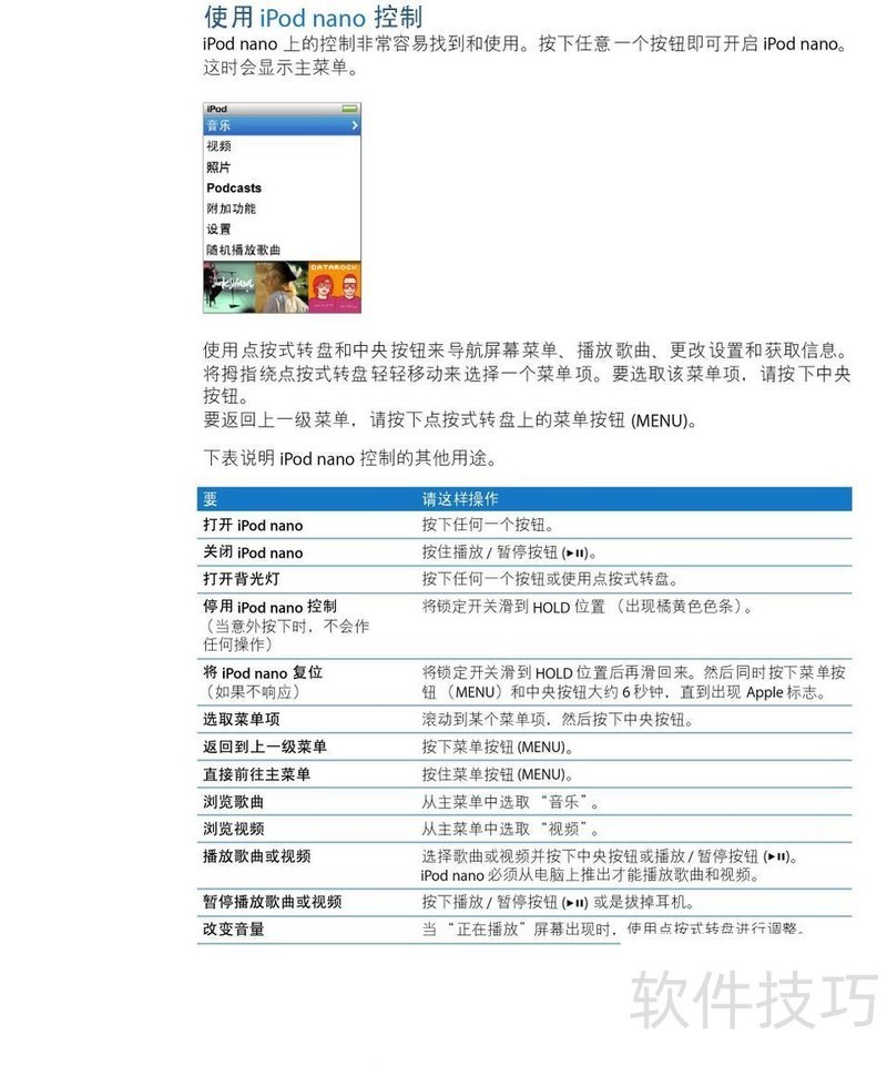 、 本文是Apple苹果iPod Nano音乐播放器使用说明书,详细讲解产品操作方法,并提供常见问题的解决办法,帮助用户更好地使用设备。